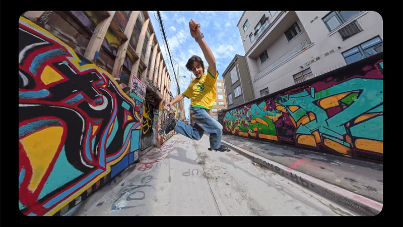 Grâce à l'effet de perche à selfie invisible capturez des angles à la troisième personne et des vues semblables à celles d'un drone. Ceci est impossible à obtenir avec d'autres caméras d'action, sans qu'aucune perche ne soit visible.