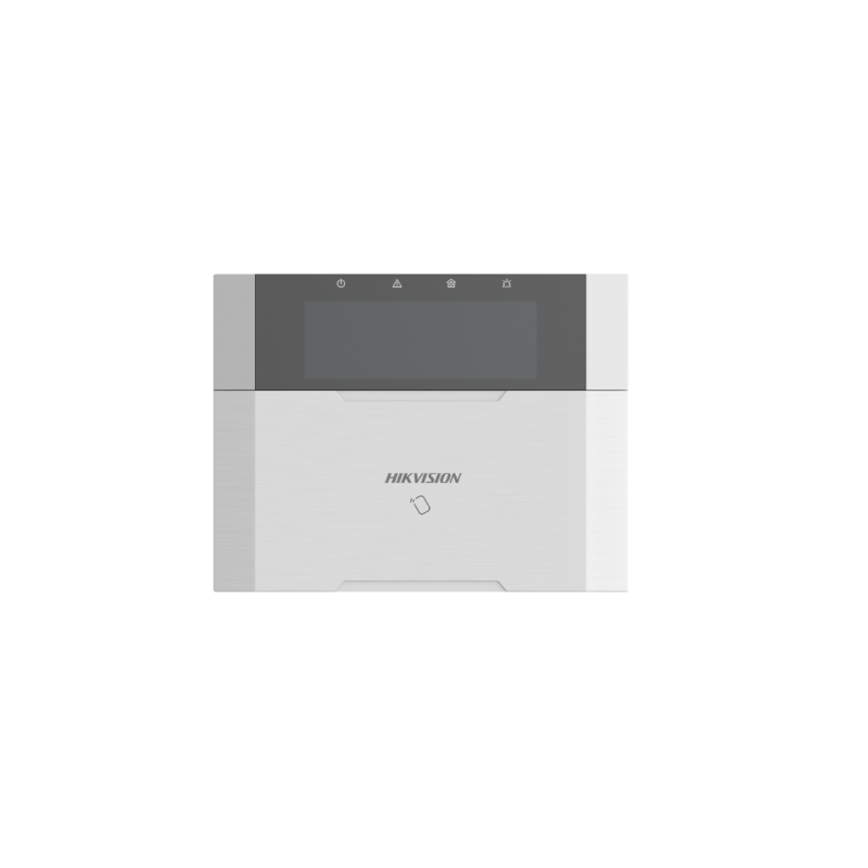 Le DS-PK1-LRT-HWE est un clavier filaire conçu pour la centrale d'alarme hybride Hikvision AX PRO. Le DS-PK1-LRT-HWE prend en charge un émetteur-récepteur sans fil et un lecteur d'étiquette intégrés, qui peuvent fonctionner avec le porte-clés et l'étiquette pour armer/désarmer le système d'alarme.